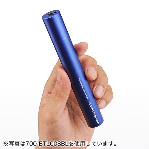 長方形の分厚いモバイルバッテリーが多いなか、こちらは筒状のステックタイプのバッテリー。